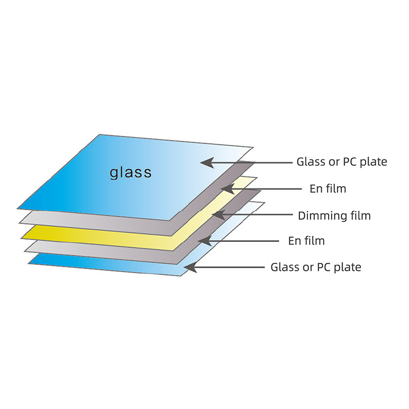 Filem dimming boleh dibuat ke dalam lapisan pelekat, yang boleh dilampirkan secara langsung ke kaca, atau diapit di antara dua lapisan kaca menggunakan proses laminasi (iaitu, kaca dimming). Voltan yang digunakan untuk filem dimming menjadikan filem pintar kelihatan telus atau berkabus, yang memenuhi keperluan dua orang untuk penembusan kaca dan privasi. Walaupun ia adalah legap, pencahayaan masih baik, yang merupakan sesuatu yang tidak dapat dicapai oleh semua langsir semasa.
