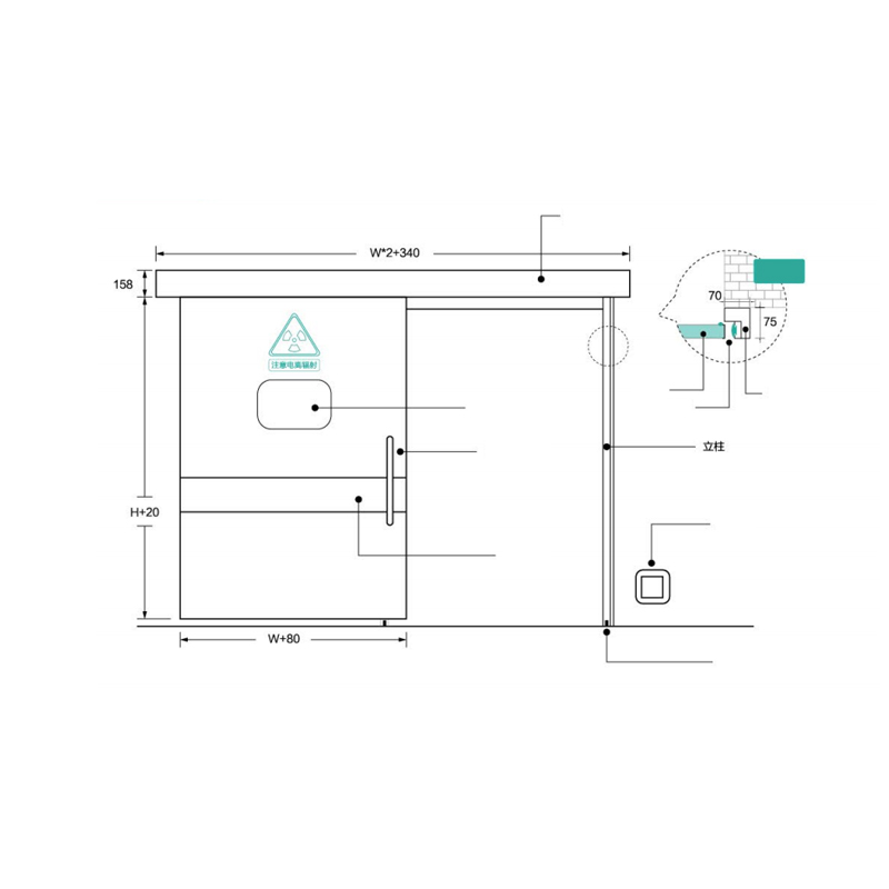 Struktur trek yang unik, yang membolehkan badan pintu dibuka sepenuhnya untuk mencapai bahagian atas rasuk kuasa, dipenuhi dengan plat plumbum, dan tetingkap pemerhatian adalah bukti kebocoran kaca dalam reka bentuk, dengan berkesan mengasingkan kebocoran radiasi.